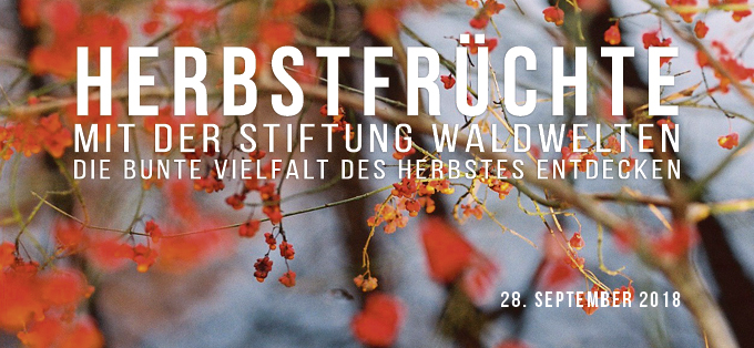 Wann: Freitag, 28. September 2018, 16 – 19:00 Uhr Wo: Eingang des Forstbotanischen Gartens Eberswalde, 16225 Eberswalde, Schwappachweg Unkostenbeitrag: 10.00 Euro Anmeldung: info(at)waldwelten(dot)de |
